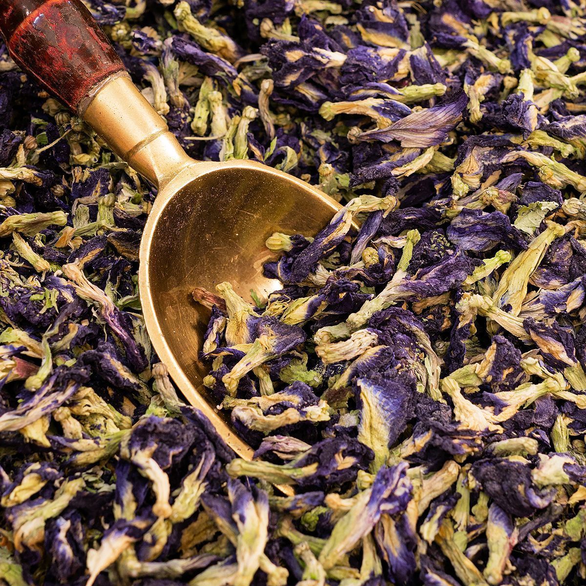Настой прозрачный, глубокого синего цвета с легким травяным ароматом. Вкус приятный, сладковатый, но не навязчивый, с еле заметной кисловатой ноткой, хорошо освежает. Послевкусие кисловато-сладкое.