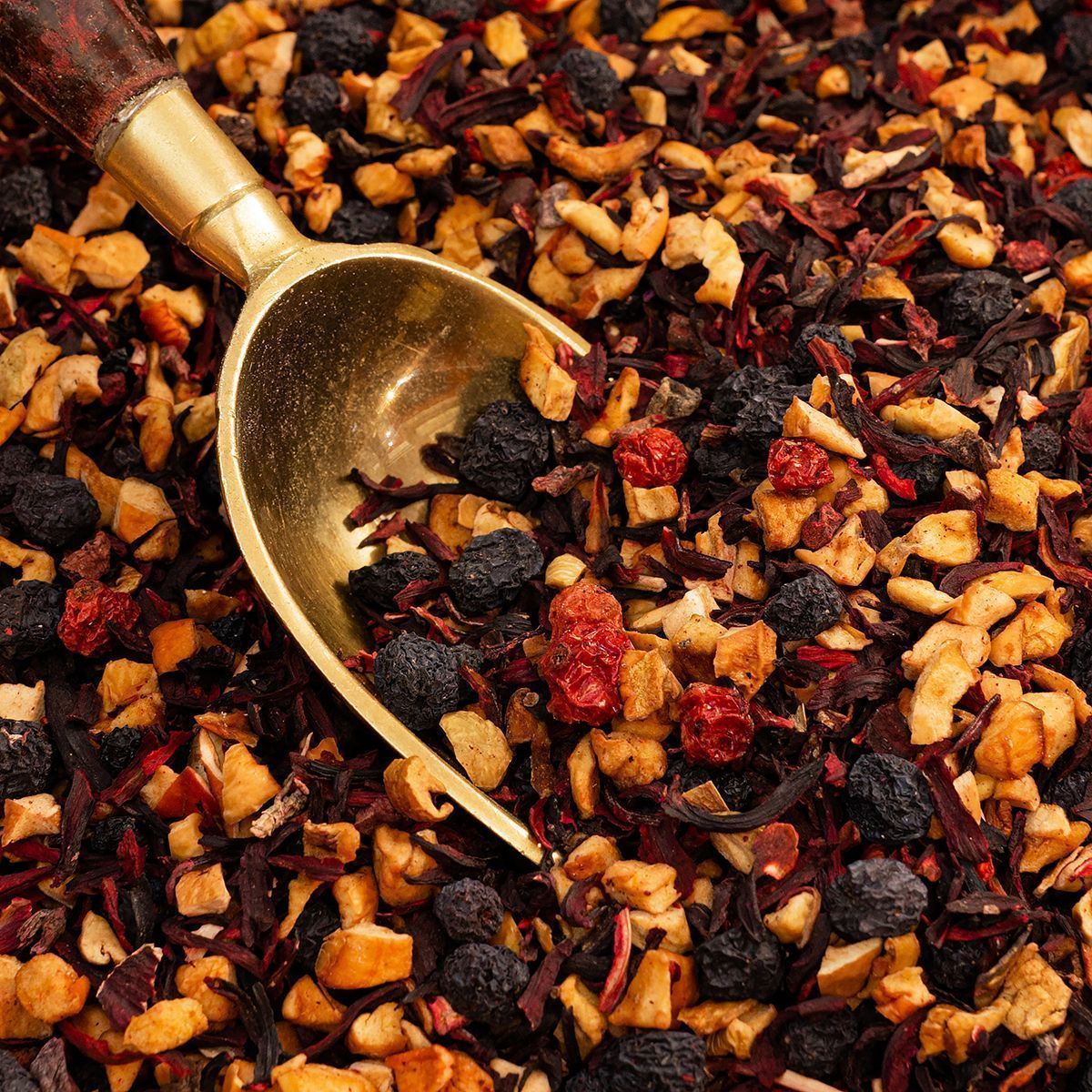 Вид заварки – яркий, пестрый и нарядный. Аромат сладкий, с тонкой ягодной кислинкой. Настой ярко-красный, насыщенный, со сладковато-кисловатым ароматом. Вкус яркий, запоминающийся, наполненный фруктово-ягодными оттенками.Послевкусие приятное, с кисловатой нотой шиповника.