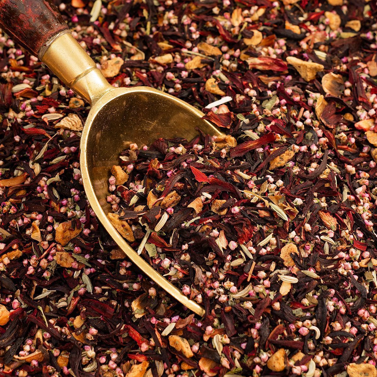 При заваривании получается настой глубокого малинового цвета с ярким, освежающим ароматом мяты и сладкими нотами фруктов.