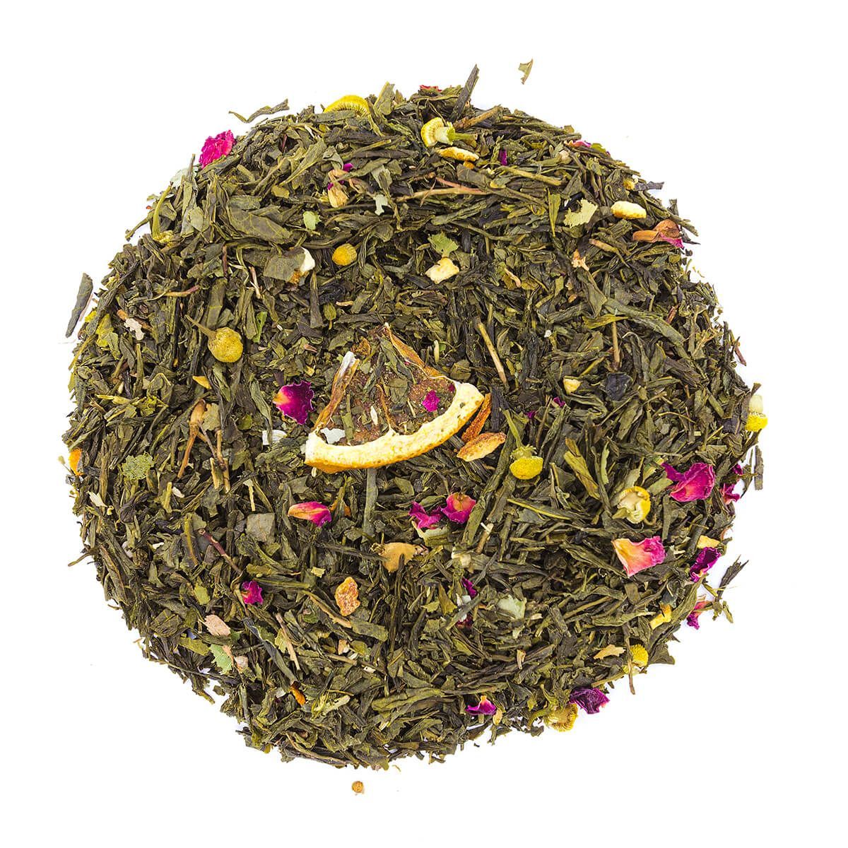 Один из самых полезных напитков нашей линейки зеленых купажей. Зеленый чай Сенча является лучшим профилактическим средством от рака и первоклассным антиоксидантом; нормализует вес и повышает уровень работоспособности. Цветы Липы применяют при кашле, насморке, бронхите и при заболеваниях почек. Плюс она не только полезна, но и невероятно ароматна и придает напитку незабываемый и оригинальный весенний вкус. Лимонная трава освежает, тонизирует и утоляет мышечные боли. Цветки ромашки успокаивают и обладают прекрасным противовоспалительным и болеутоляющим действием.