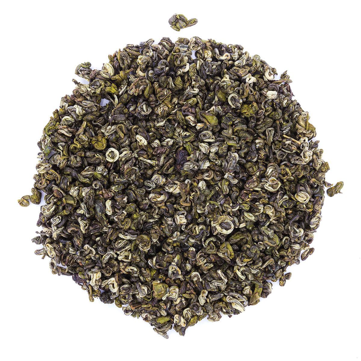 Чай имеет вид изящной спирали изумрудного цвета со светлой ворсистой почкой на конце. Аромат в прогретой гайвани яркий, фруктовый, с нотками свежей зелени.