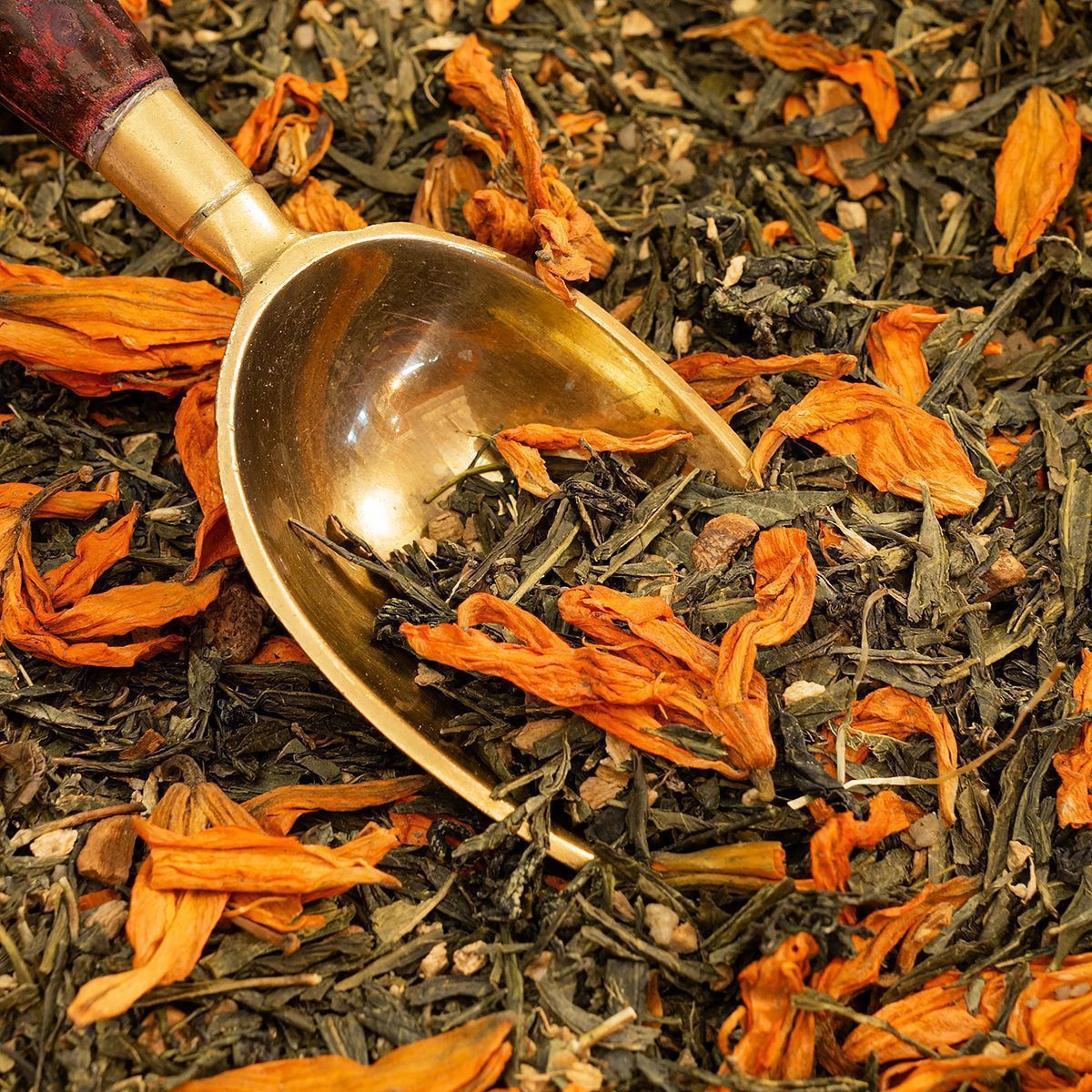 Японский зеленый чай Сенча с добавлением медовых гранул, кусочков корицы и коня имбиря. Яркий, свежий, бодрящий аромат и вкус, согревающий и дарящий хороший настрой на предстоящий день. Великолепно бодрит, укрепляет иммунитет и дарит отличное настроение.